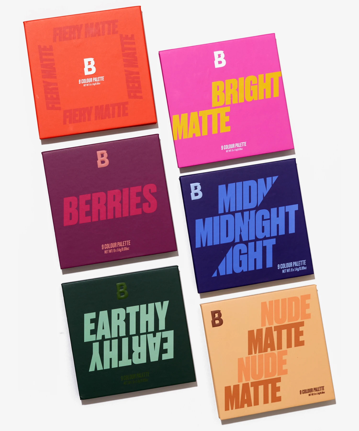 – Bright Matte 9 Colour Palette – A collection of nine matte rainbow-hued eyeshadows