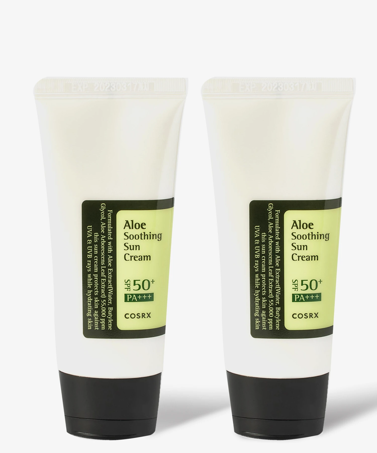 Perfect for daily use, the COSRX Aloe Soothing Sun Cream SPF50 PA+++ Duo works to protect the skin from UV and environmental aggressors while deeply hydrating. Lightweight enough to feel like a moisturiser, this sunscreen is easily and quickly absorbed by the skin, without feeling greasy or leaving a white cast. Formulated with Aloe Arborescens Leaf Extract, the SPF leaves skin hydrated in the summer and moisturised in the winter, without stripping the complexion. The best part is you get two!