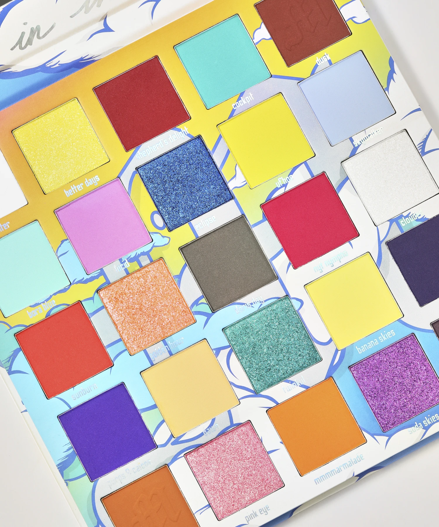Create looks that are out of this world with the Made By Mitchell Head In The Clouds Palette & Pouch. A new take on the classic ‘rainbow palette’, this palette features 25 shades in a mix of pastels, neons, and deep tones, creating a palette that’s whimsical yet bold. The ultra-pigmented, butter soft colours buff and blend seamlessly onto the lid, whilst the mix of matte, metallic, and sheen finishes will take your makeup looks to the next level. Store your palette inside the unique, cloud print pouch.