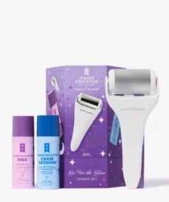 Radiant and healthy skin starts with the Higher Education x Vanity Planet Go For The Glow Set. Inside this trio you’ll find a gentle ice roller, a retinol serum and a blue light blocking moisturiser, that work together to transform your skin from lacklustre and dull to radiant and ready for the day.