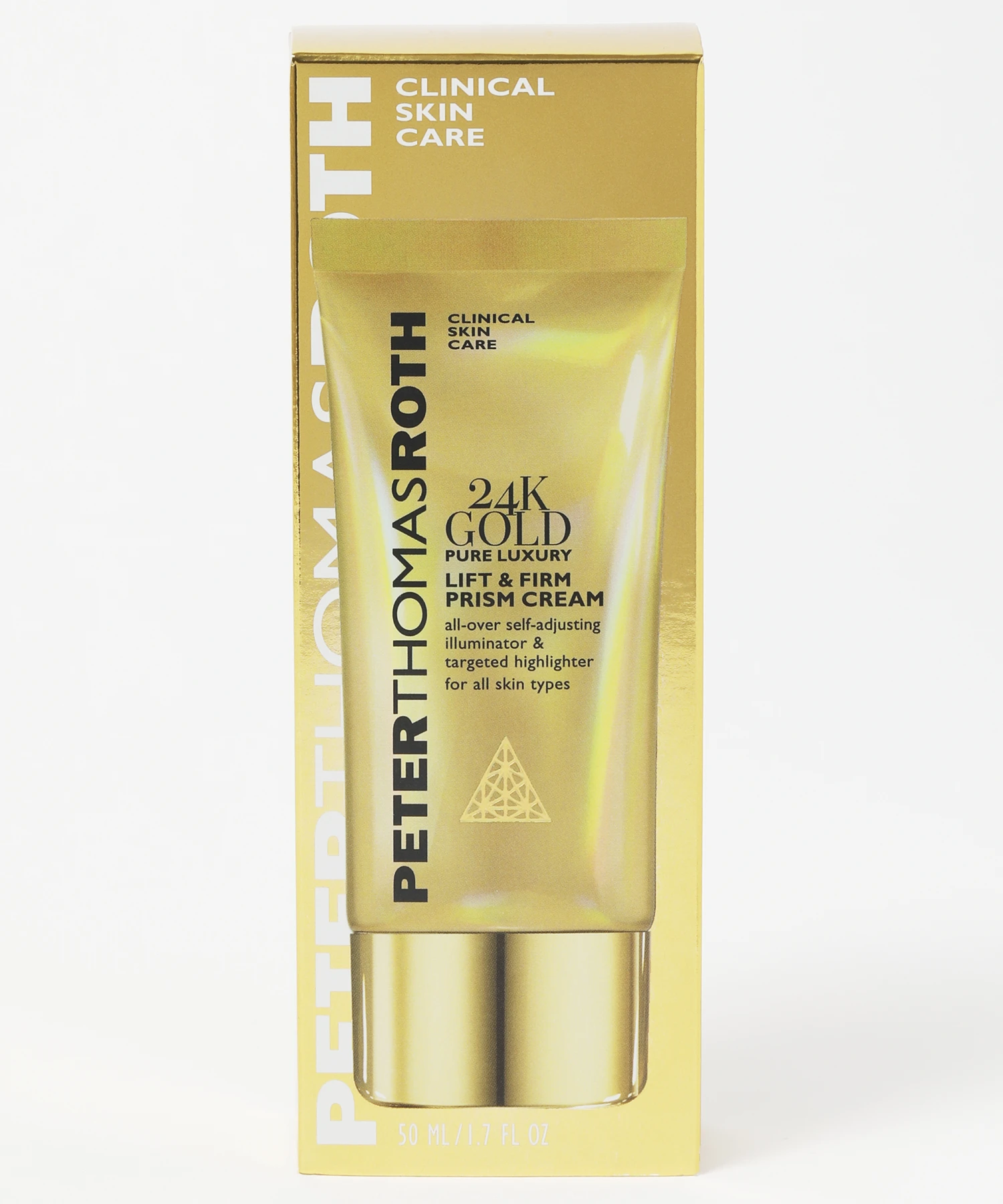 Upgrade your glow to iconic with Peter Thomas Roth’s 24K Gold Prism Cream. Designed to enhance luminosity and add a look of radiance to the skin, the cream highlighter uses three shade sensing spheres to self-adjust to complement every skin tone while creating a full spectrum glow. Enriched with 24K gold, colloidal gold, and intelligent shade-sensing sphere technology, the formula uses optical diffusers to scatter light and diminish the appearance of imperfections, plus advanced hydrators to help to prevent water loss to provide immediate and long-term hydration to create a fresh, dewy finish.
