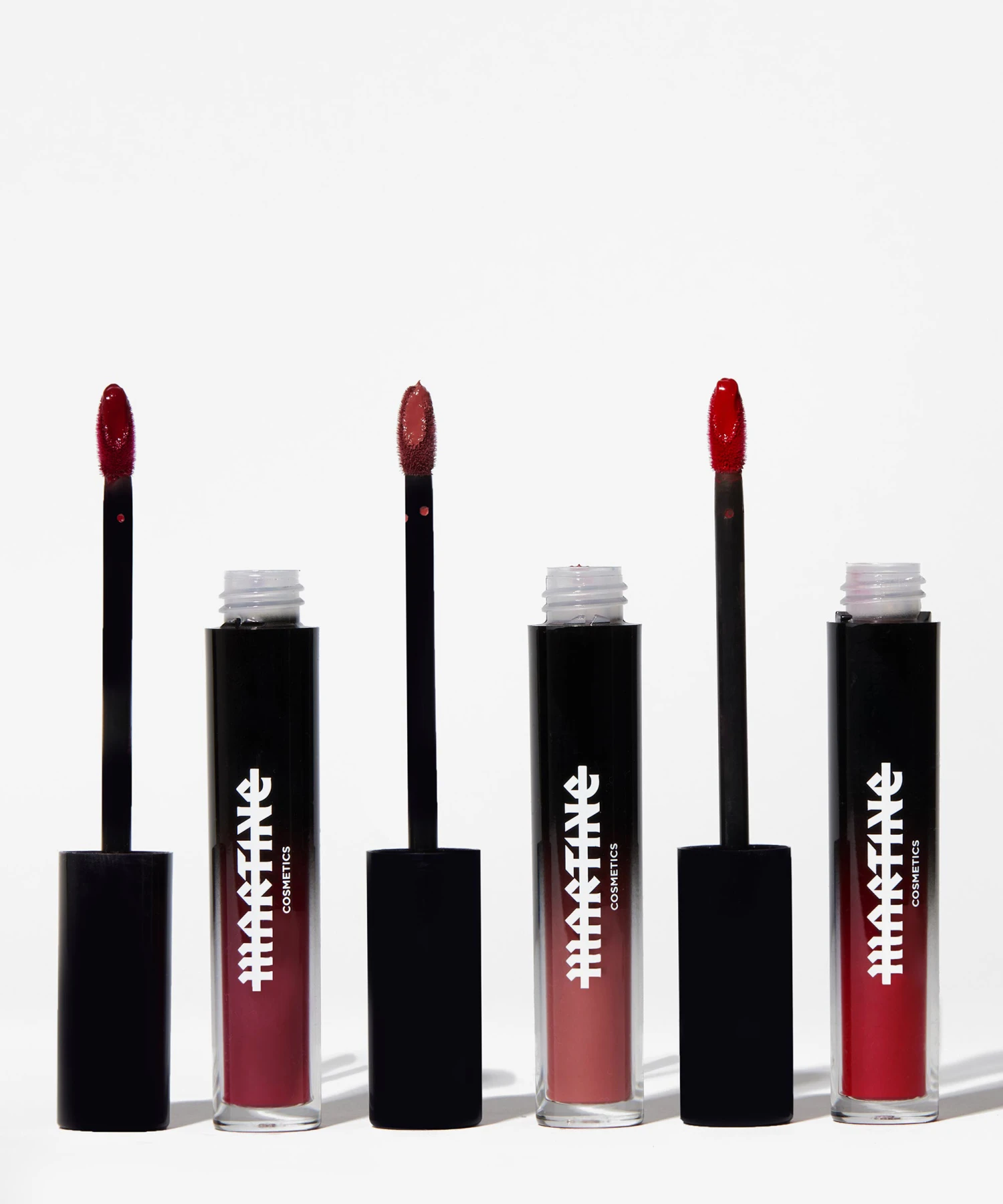 A set of three liquid matte lipsticks.